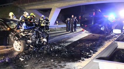 Das Auto der 41-Jährige wurde weggeschleudert worden und landete auf dem Dach, wie es hieß. Die Frau wurde eingeklemmt und von der Feuerwehr befreit. Sie starb noch in der Nacht am Unfallort. Der Mann erlitt leichte Verletzungen und wurde in ein Krankenhaus gebracht. Zusammen mit einem Unfallsachverständigen ermitteln nun die Staatsanwaltschaft und der Verkehrsdienst. (dpa/lsw)